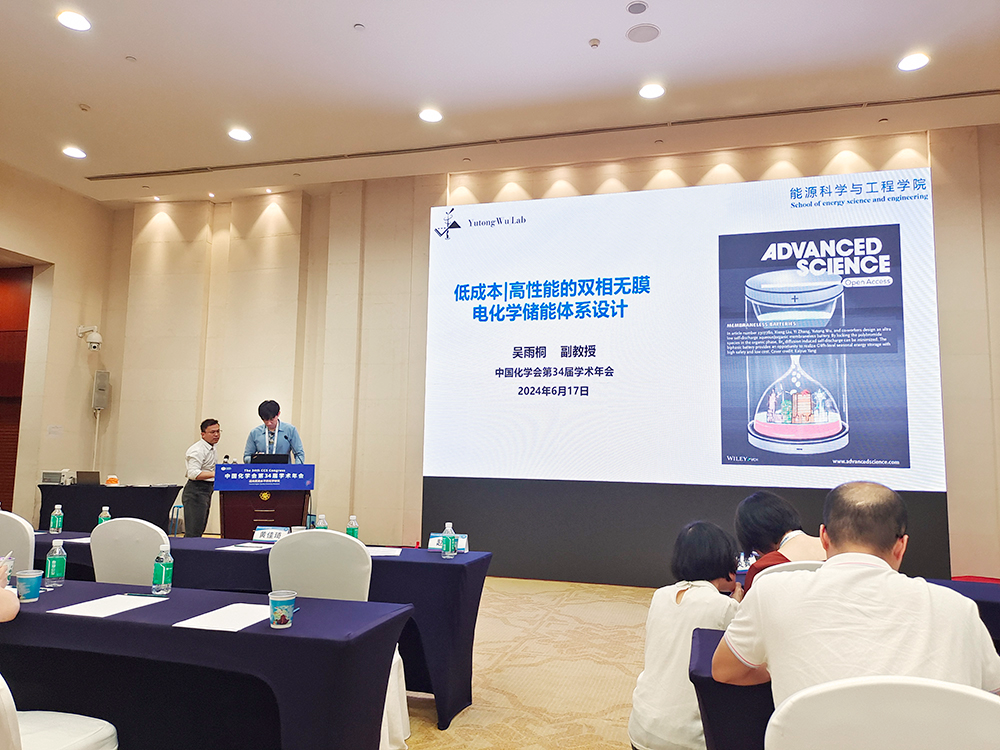 吴博士在第34届中国化学会年会上作了题为“低成本|高性能双相电池设计”的口头报告。2024年6月