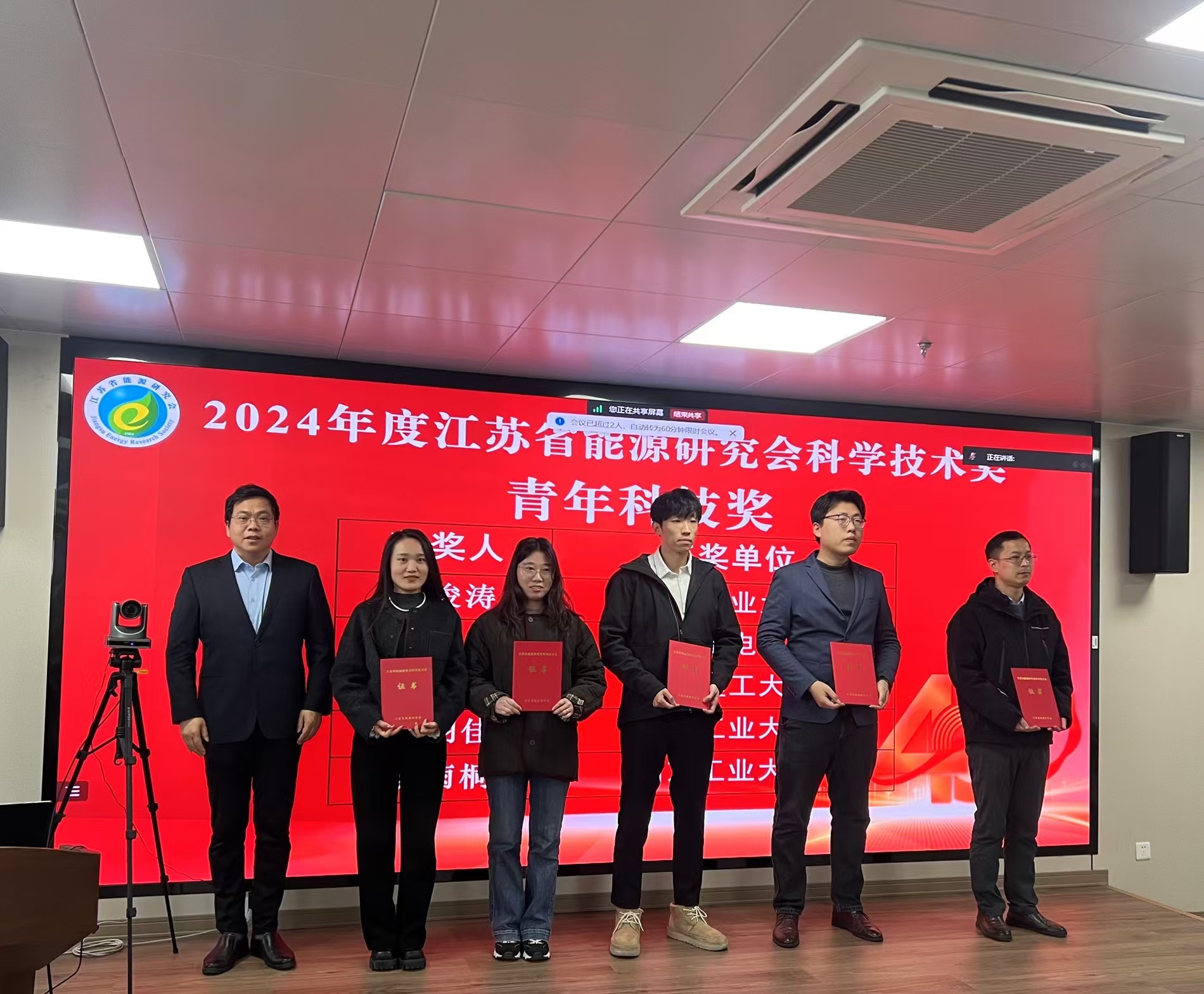 吴博士荣获2024年江苏省能源研究会青年科学技术奖,该奖项每年仅授予5名32岁以下的青年科学家。2024年11月