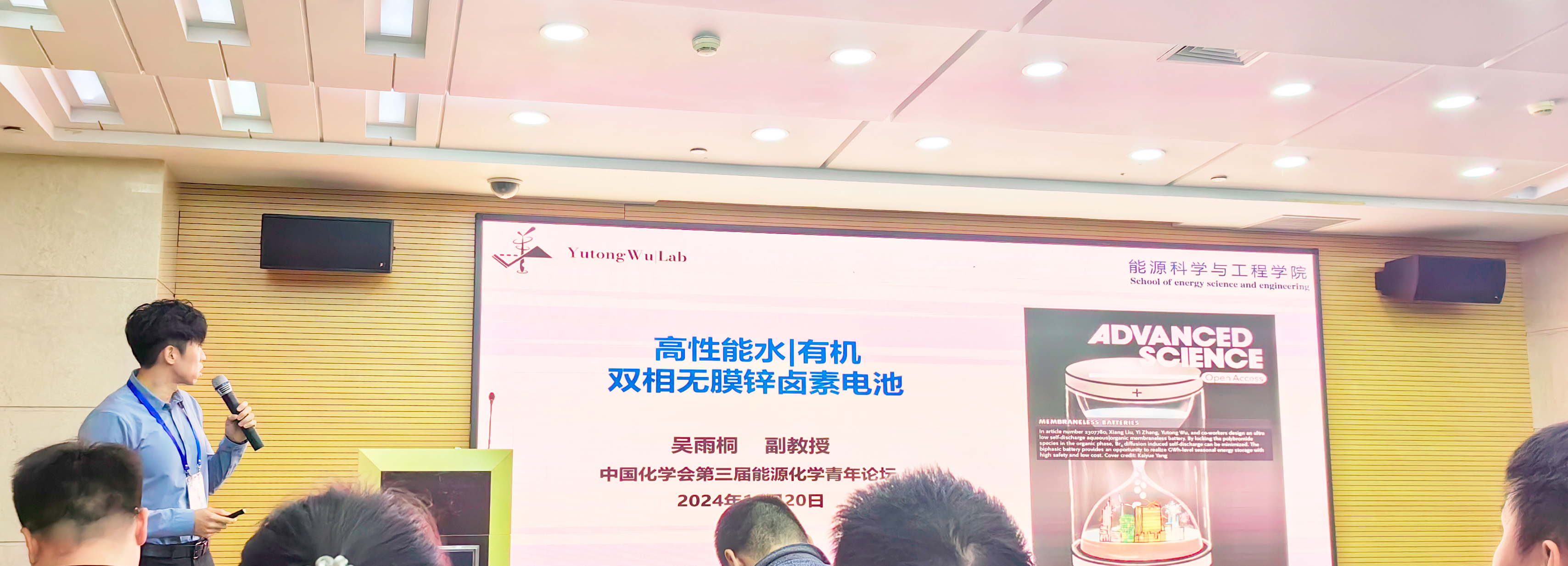 吴博士在中国化学会第三届能源化学青年论坛上作了题为“高性能水有机双相无膜锌卤素电池”的邀请报告20。24年10月